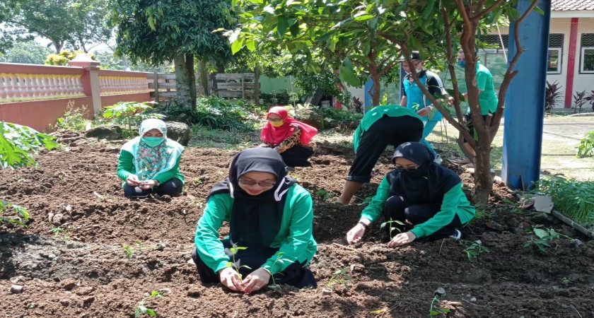 “Kegiatan menanam pohon dilakukan bersama-sama oleh warga sekolah. Untuk jenis pohon yang ditanam adalah pohon cabai dan terong.” Ungkap koordinator pemanfaatan lahan, Darmono, S.Pd.