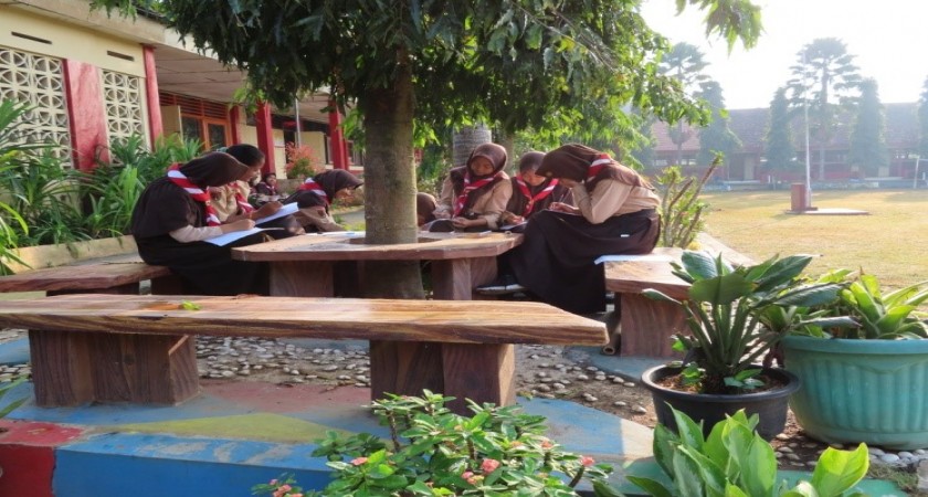 Selain itu, ada juga siswa yang mengerjakan di taman depan ruang guru. Secara bergerombol, banyak pula siswa yang mengerjakan di depan kelas. Mereka terlihat berusaha memaksimalkan waktu satu jam untuk menciptakan sebuah karya puisi.